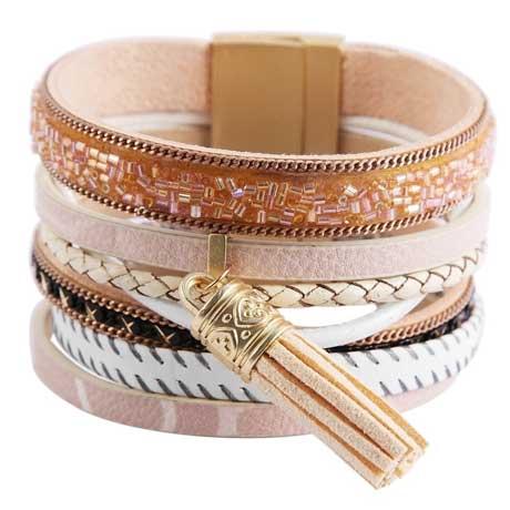 Συνθετικό μπεζ δέρμα με κρύσταλλα και μαγνητικό κούμπωμα. Μήκος: 19,5cm
